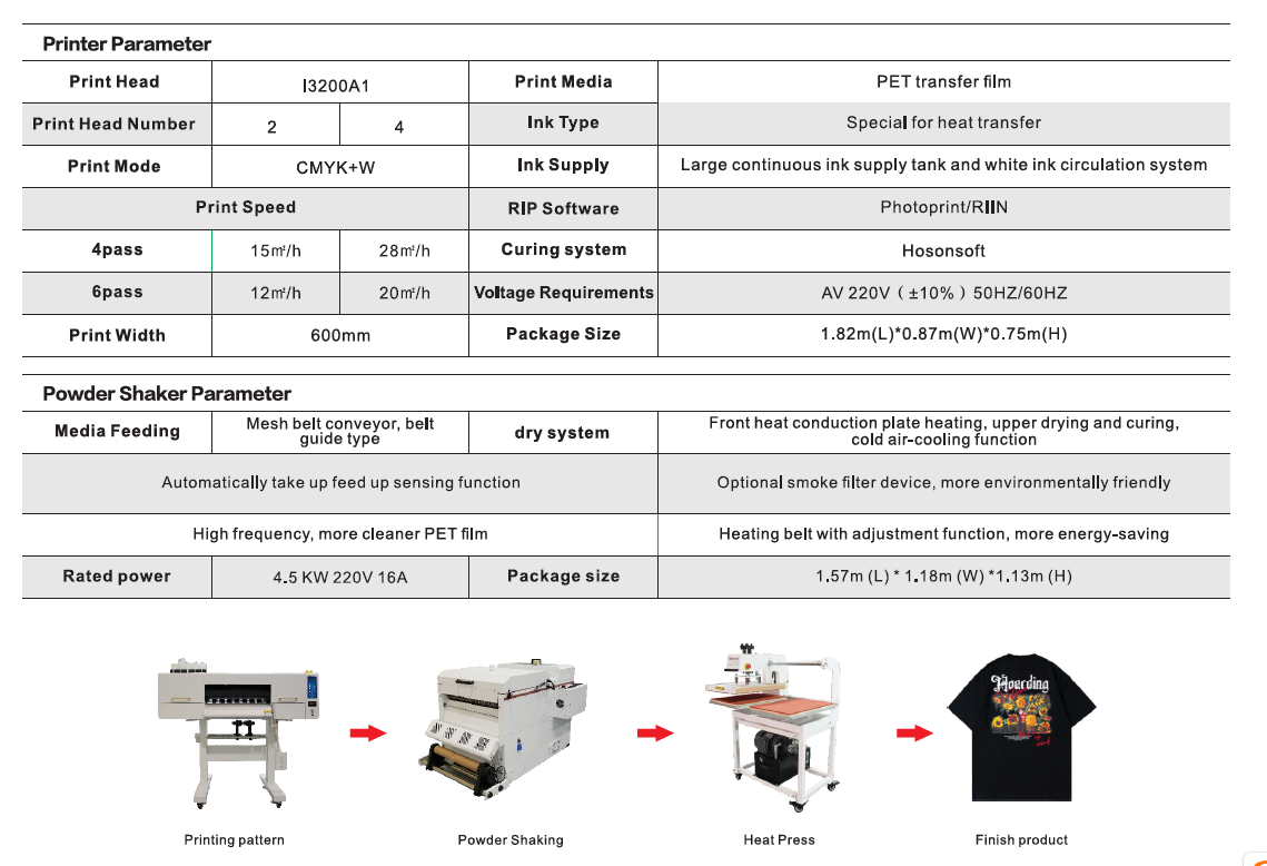 Print Width: 60CM.Epson-i3200A1 print head.Auto-lift cleaning station.Large capacity bulk ink